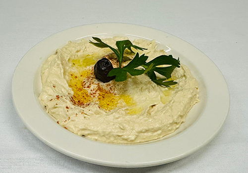 Chickpeas blended with sesame paste sauce (tahini), garlic, olive oil and cumin.