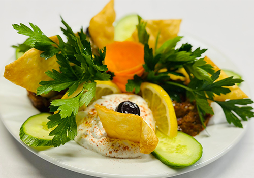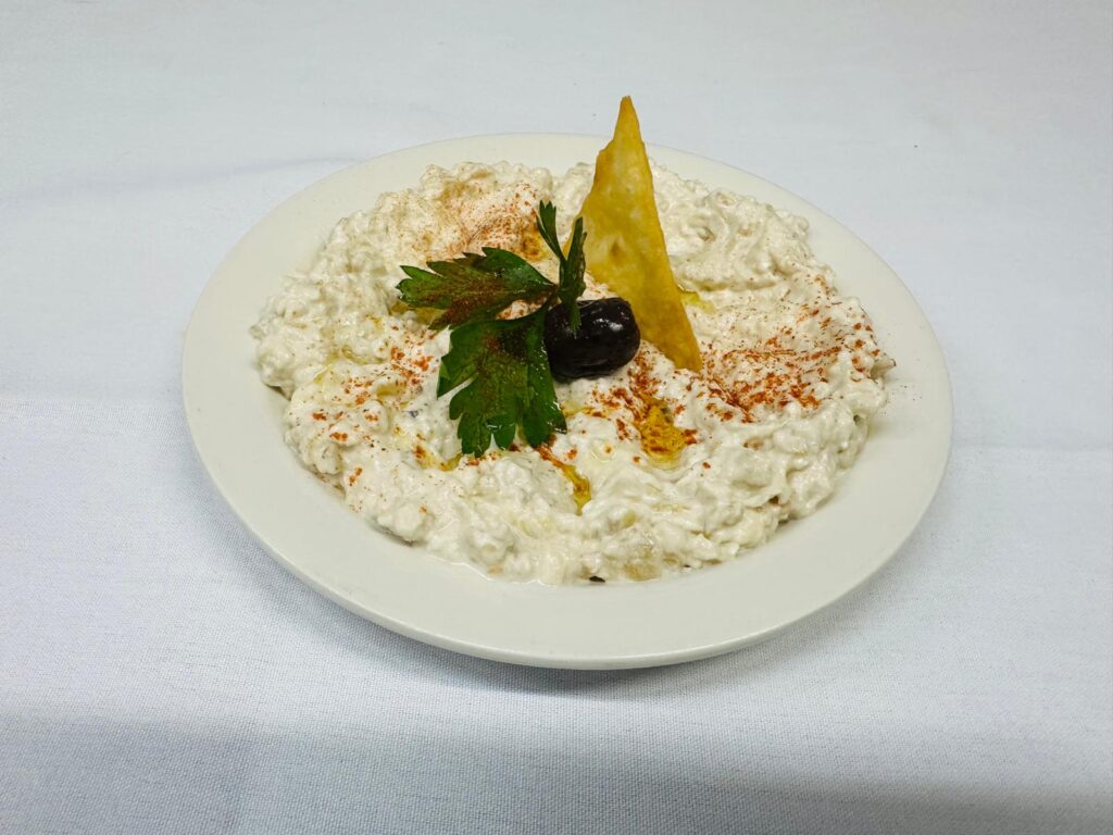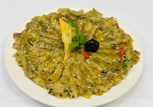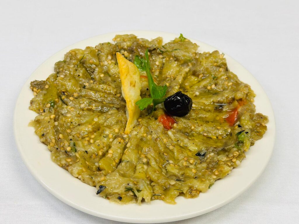Roasted eggplant puree blended with olive oil, milk, lemon juice and herbs.