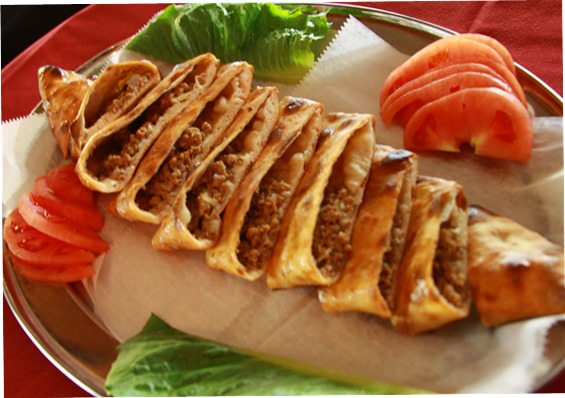 Thin crusty dough topped with, ground lamb blended with vegetables and herbs