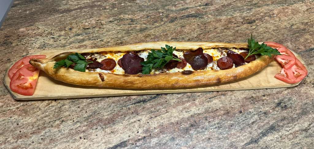 Thick crusty dough topped with Turkish kashar cheese and pastrami